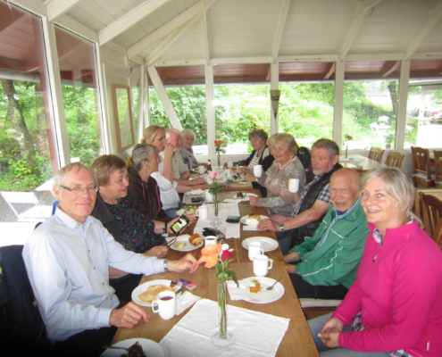 Vi hadde god plass på kafeen, laga langbord og hadde to hyggjelege timar saman med litt mat og kaffi.