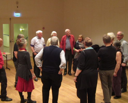 På biletet ser vi folket på dansegolvet. For etter vaten var det songdans og musikkdans.…