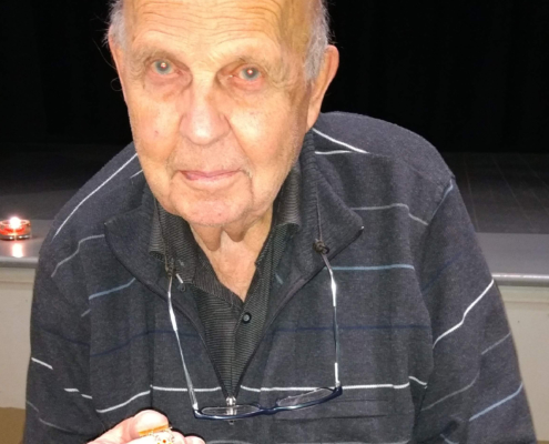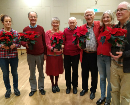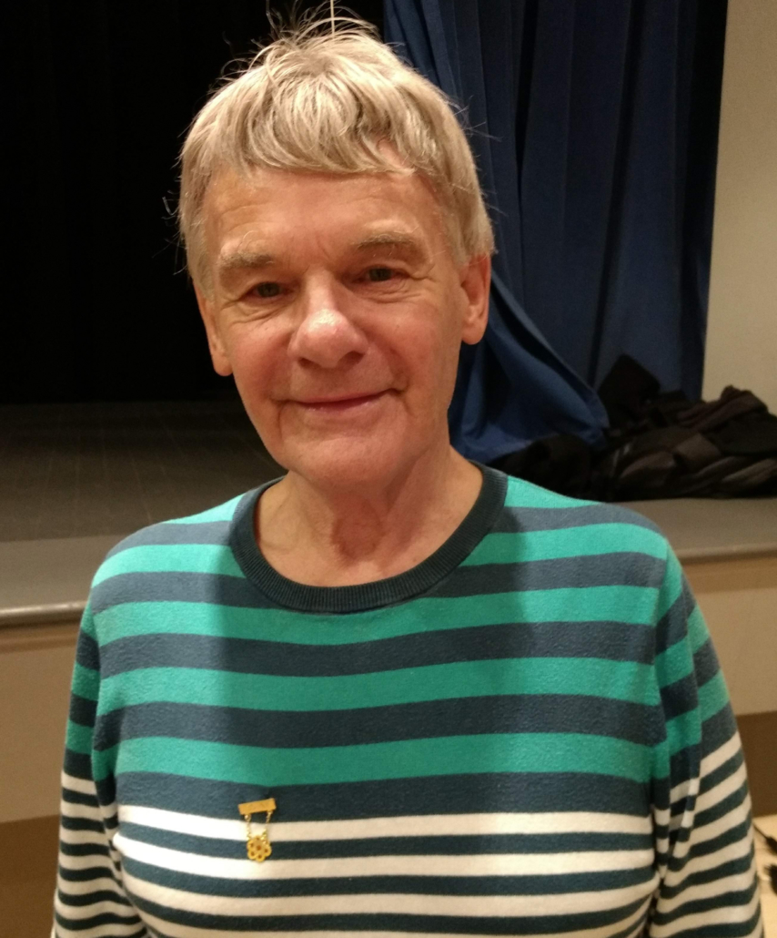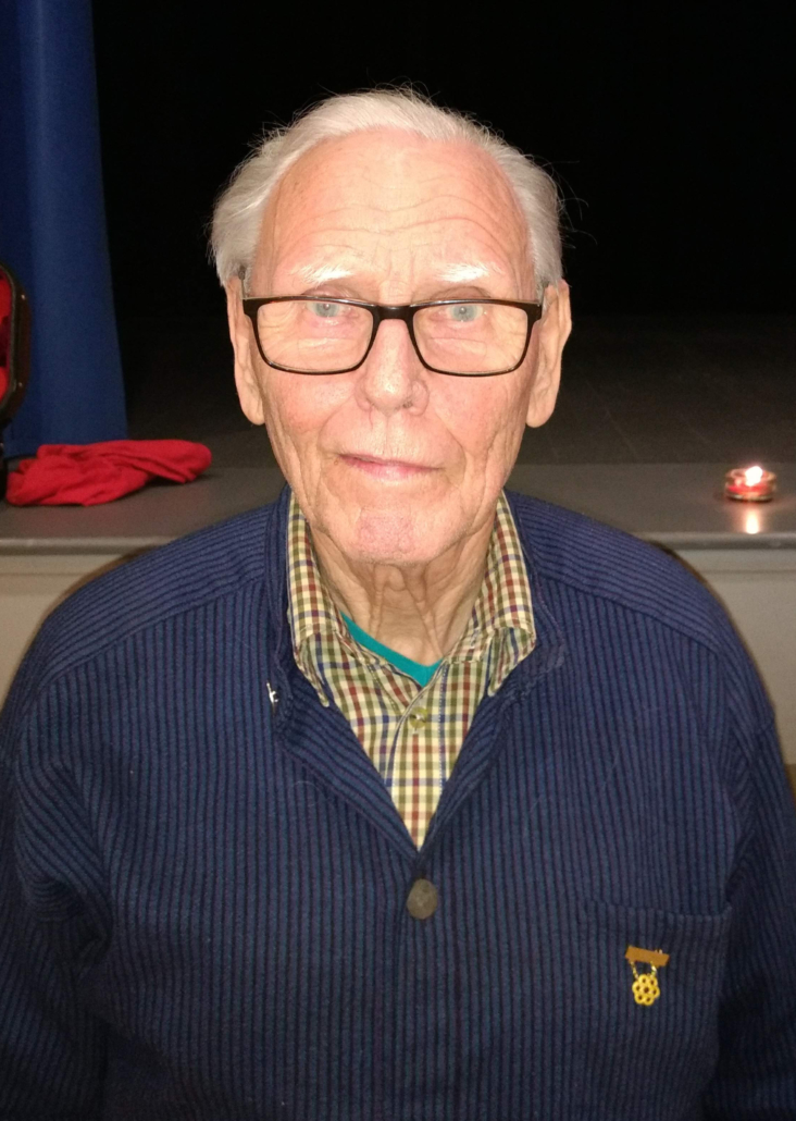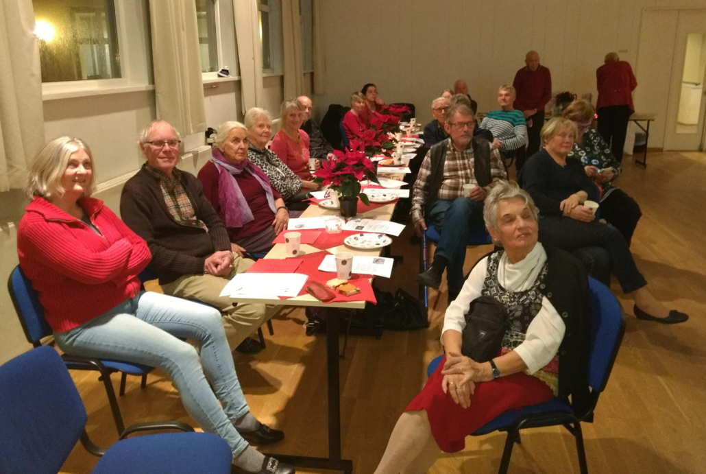 Det var bra frammøte på julefesten i Oslo Songdanslag måndag 3. desember 2018 – det var dekka til 20 og alle setene vart fylte. Den faste nemnda, med litt støtte, hadde som vanleg laga til eit pent langbord, god kaffi/te og julekaker med og utan brunost. Det smakte godt!  Under bordsetet song vi 3 songar, og Vebjørn viste fram den nye heimesida, og vi mimra om gamle dagar i Oslo Songdanslag via to gamle NRK-program. Rart å sjå igjen gamle/unge kjente! Så var det dans, både litt stordans, songdans og musikkdans. Og nytt bordsete med utdeling av 5-års-medaljer: Karstein, Mari, Bjarne, May Britt og Bjørn Harald fekk alle 35-års medaljer, Inger Frøydis (ikkje til stades) fekk 50-års medalje og Grethe fekk 55 års medalje! Av Karstein fekk laget eit eksemplar av den nåla Oslo Songdanslag hadde som merke før NS overtok merket, og laget vårt måtte få nytt. Det skjedde i 1933. Karstein har teke vare på merket i mange år. Nå skal merket saman med anna arkivmateriale overførast til Oslo Byarkiv. Før vi song avslutningssongen, fekk nokre dei fine julestjernene som takk for innsatsen: Vebjørn, Solvor og julefestnemnda. Vel blåst! (Bilde av Børre frå NRK-programmet. Han var formann i 25 år!)