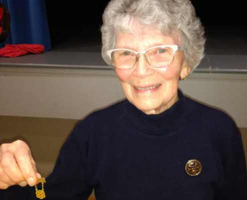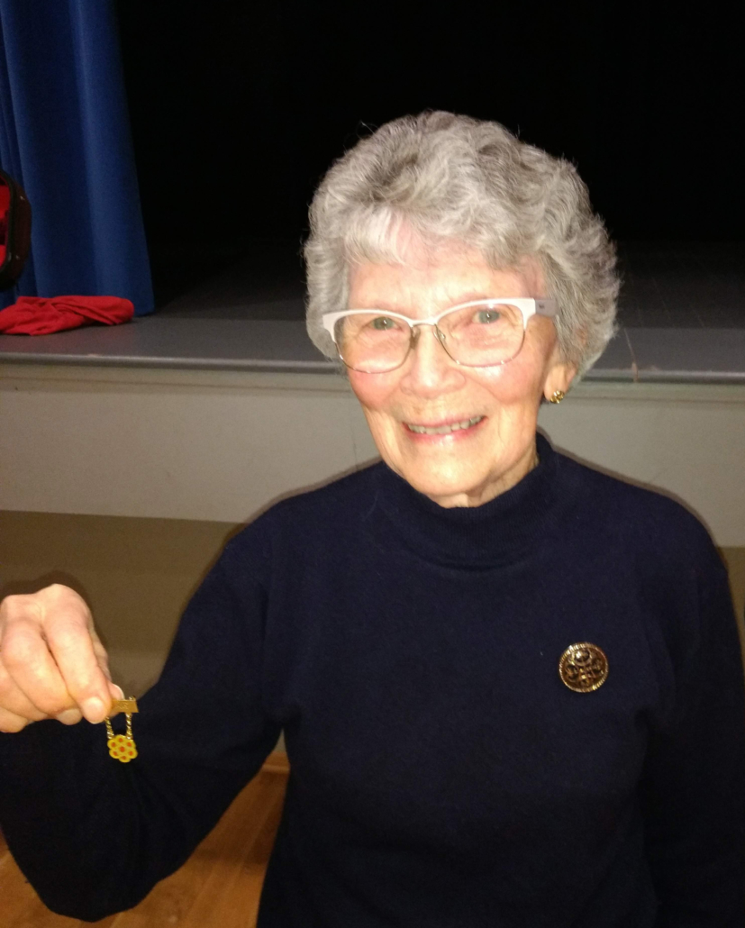 Til høgre har vi lagt inn eit bilde av Inger Frøydis med 50-års medalje og eit bilde av det gamle olavs-krossen som var Oslo Songdanslag sitt merke før 1933.
