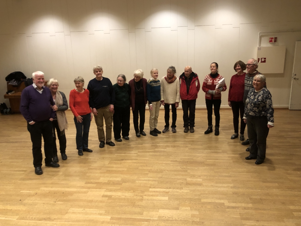 Det var i alt 14 som møtte til juleavslutninga i år. Som vanleg vart det servert julebrød og heimebaka julekaker, kaffi og te. Vi song nynorske julesongar dette «nynorsksemesteret». Vi fekk sjå historiske innslag frå 1970-talet. Laget har slutta med å lage nye «årsmerke», men dei som fyller «medlemsår» blir lesne opp og heidra. I år fekk dessutan to av dei årsmerke av restopplaget, Inger Frøydis (55 år) og Bjørg (40 år). Litt songdans og musikkdans til slutt, Solvor spela som vanleg.