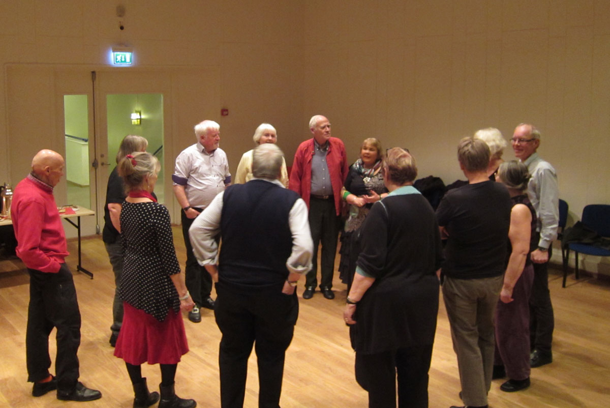 På biletet ser vi folket på dansegolvet. For etter vaten var det songdans og musikkdans. Solvor sytte som vanleg for musikken.