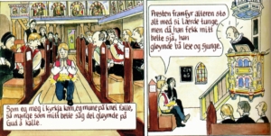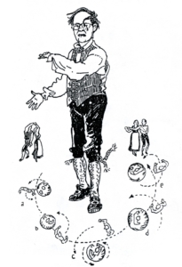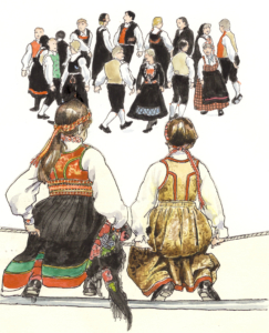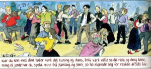 I bildeserien nedanfor har vi valt ut nokre av dei flotte teikningane han laga for Oslo Songdanslag. Vi synest dei fortener eit stort publikum.