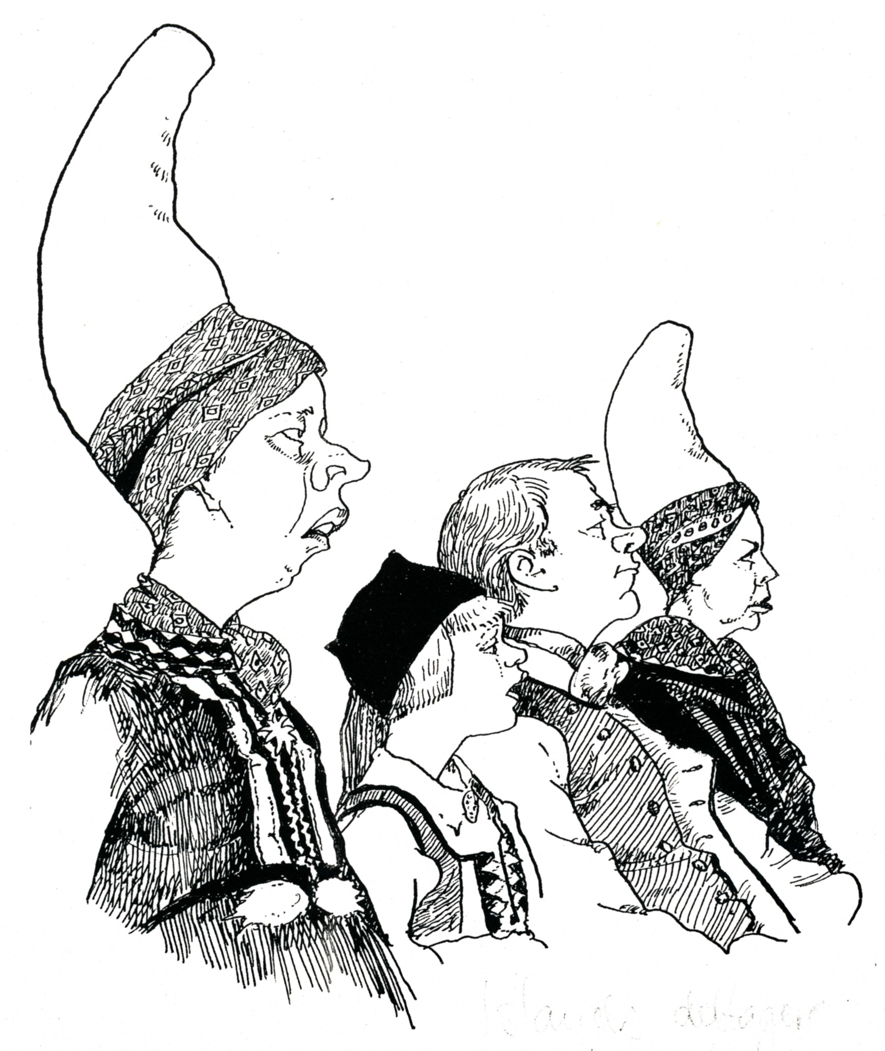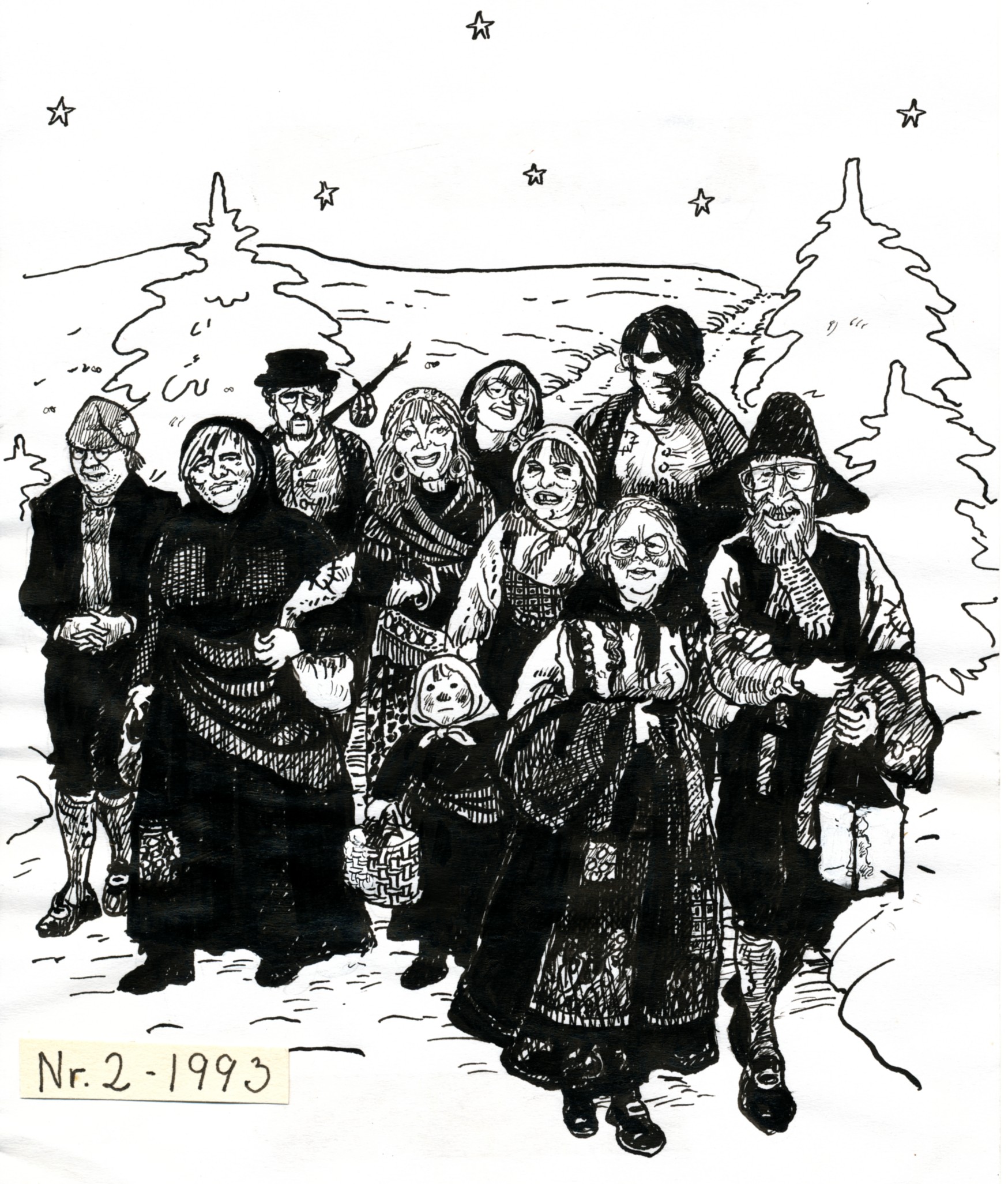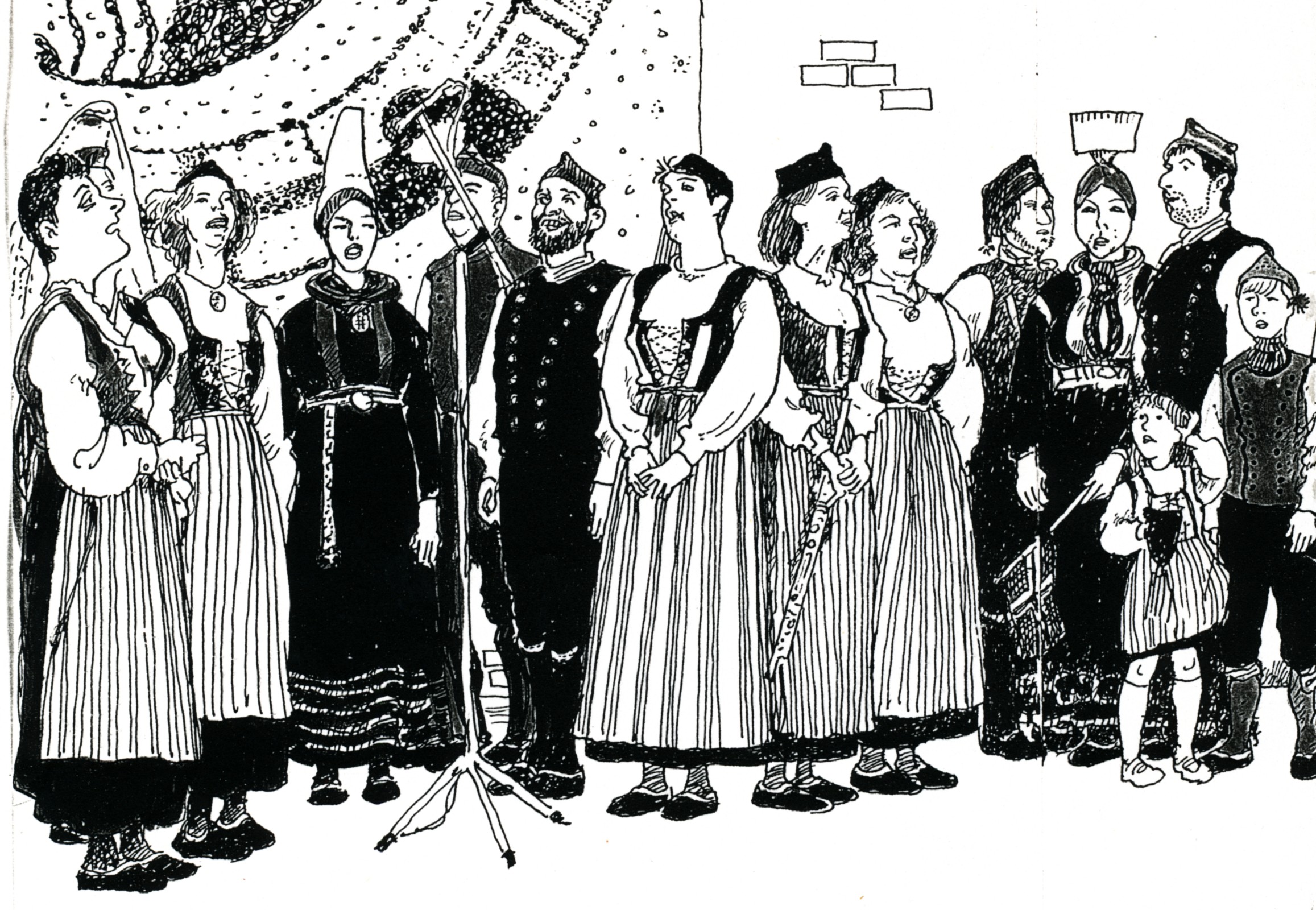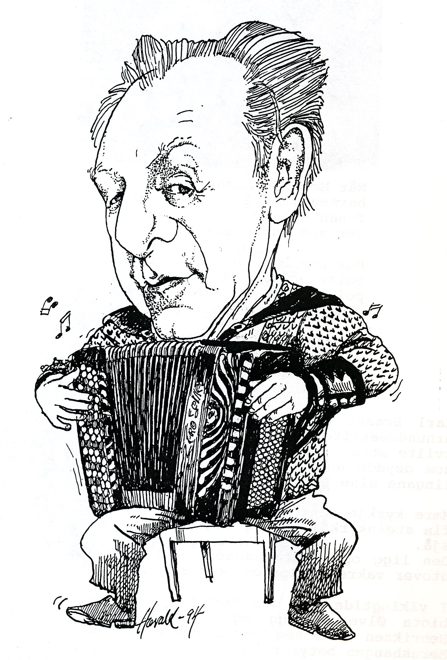 I bildeserien nedanfor har vi valt ut nokre av dei flotte teikningane han laga for Oslo Songdanslag. Vi synest dei fortener eit stort publikum.
